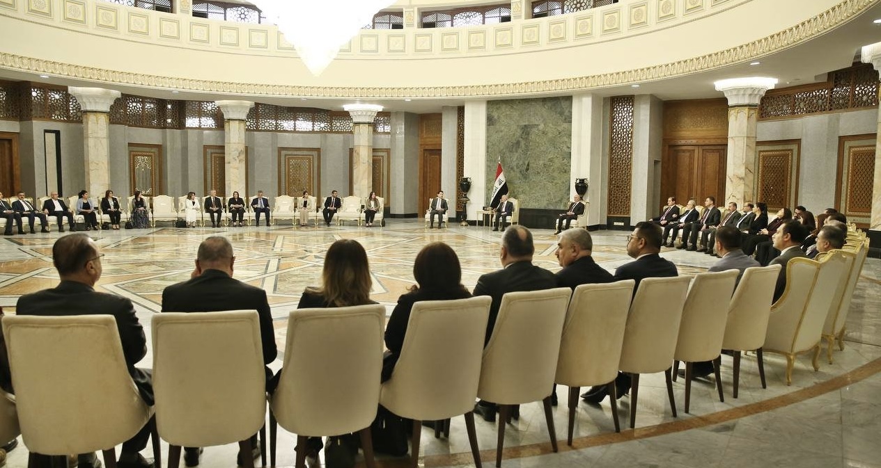 وذكر المكتب الإعلامي لرئاسة الجمهورية في بيان تلقته “عشتار تايمز”، أن “رشيد استقبل اليوم في قصر بغداد، النائب الثاني لرئيس مجلس النواب شاخوان عبد الله، ووزير البيئة نزار محمد سعيد، وعدداً من رؤساء الكتل النيابية، وأعضاء من مجلس النواب، إضافة إلى عدد من المسؤولين، وفي مُستهل اللقاء، رحب رئيس الجمهورية بالضيوف، مشيرا إلى أهمية التعاون والتعاضد بين القوى السياسية من أجل دعم الحكومة في تنفيذ برنامجها الوزاري وترسيخ الأمن والاستقرار المتحقق وديمومته”.