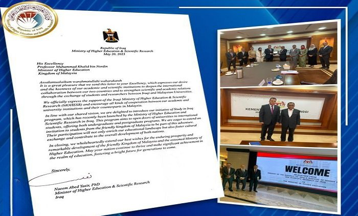 إن وزارة التعليم العالي والبحث العلمي العراقية تعرب عن حرص ورغبة مؤسساتها على تعميق أواصر الصداقة التاريخية بين البلدين وتعضيد العلاقات العلمية والأكاديمية من خلال تبادل الطلبة والباحثين بين الجامعات العراقية والماليزية.